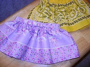 You can sew up a quick and easy skirt for your child using bandannas! Thrifty bandanna skirts are simple sewing projects for kids to wear.