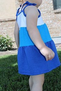 This is much cuter little girl dress and doesn't look like grandma's cut down to fit. I like!