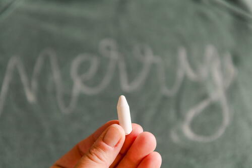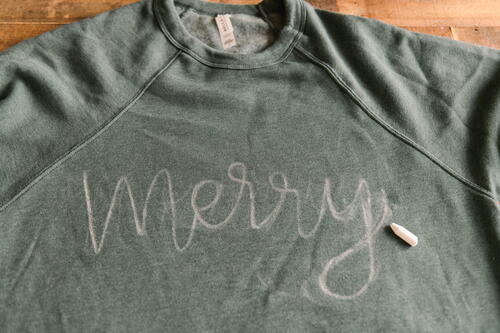 Then you will prep your lettering by drawing your lettering on with some chalk or an erasable fabric marker! -