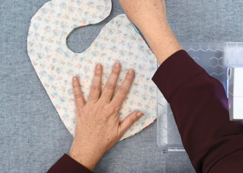 3. Using the template, trace and cut out the bib on cotton batting, adding extra space for the seam allowance if needed.