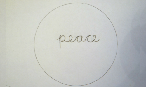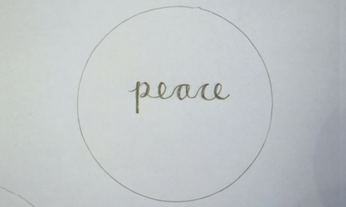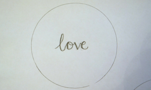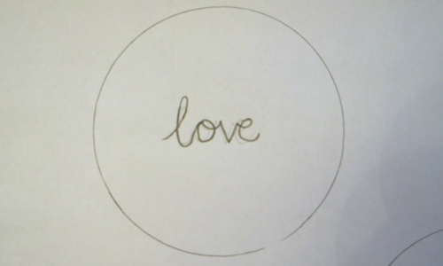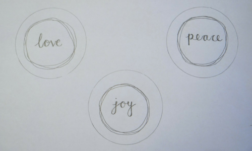 Repeat for the words "love" and "peace." If you wanted to, you could just write the words and use the garland you’ve already drawn. I redrew them because I wanted each hoop to look slightly different.
