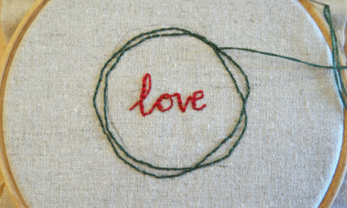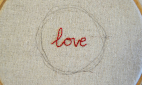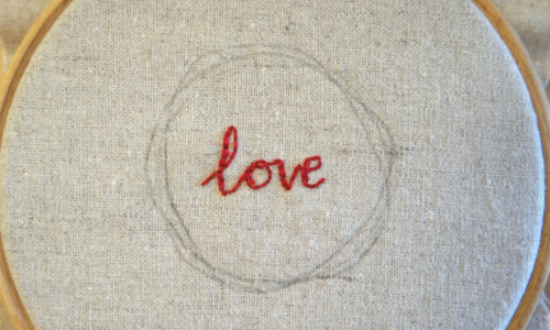 The letters are worked in backstitch. I wrote each word without lifting the pencil off the page, so it’s possible to sew each word all in one go! Just start at one end and keep going, just as if you were writing.