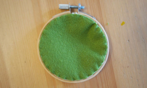 Using the inside part of the hoop, draw round it onto a piece of felt and cut it out.