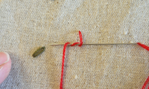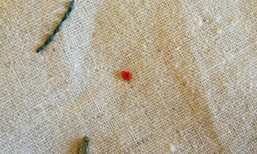 If you don’t have the beads and you don’t want to buy some, you could sew some French knots in red or white instead.