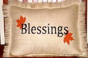 Bring the fall season into your home with this Burlap Fall Pillow. By following this easy tutorial you will learn how to sew a pillow in no time. Customize your pillow with your very own sweet message. You only need acrylic paint and a stencil to paint the leaves and message on the pillow; it's just that simple. The neutral color scheme makes it easy to match this pillow to your other fall decorations. It will add just the right seasonal touch to any couch in your home.