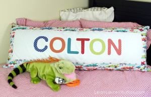 This Personalized Body Pillow is a great little piece of home decor. You can sew one for the kids' room with their first names, or sew a family name pillow for the living room. Better yet, you can adjust the pillow size to be as big or small as you want! It's so easy to create your own design from this homemade pillow tutorial. Personalize the pillow frame with a fabric that represents the personality of the name on the front!