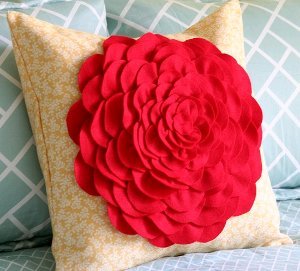 I love the brightness of this pillow, and the flower really does grab your attention! Sign up for our free newsletter to see this featured along with other lovely fabric flower patterns.