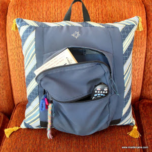 What a great idea for car or plane travel. Young kids might especially like the pillow and backpack combination particularly if a child-centered novelty fabric is used for the pillow part. The tutorial is easy to follow and a great beginner type project for teens. Thoughtful gift idea for adults too.
