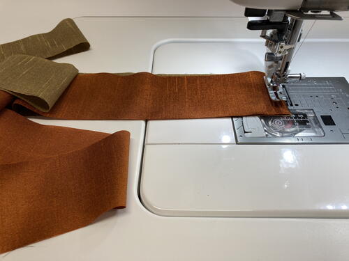 Using a colored thread that matches the twill tape, stitch 1/8” down along the left and right sides of each twill tape.