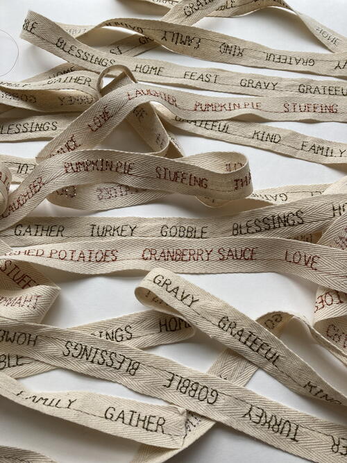 Yards and yards of beautifully stitched words on twill tape! -