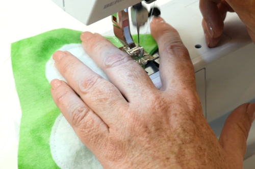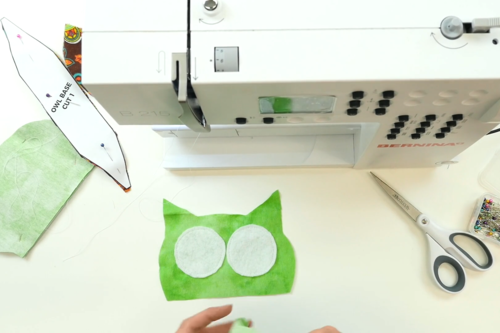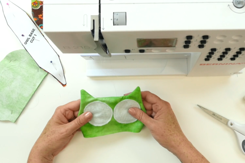 Place eyeballs on right side of one owl head piece and topstitch into place.