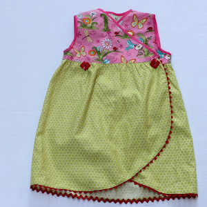 This little tulip hem dress is adorable. I have made two other similar sundresses for little girls but not with this pretty hem. I love that the bodice picks up the color of the ric rac trim and buttons. I added a fabric flower made in the yo yo shape with a button in the center from the bodice fabric and this added a little extra snazz to it, but really no need with this pattern. Thanks for sharing.