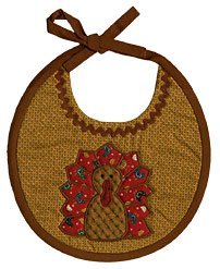 This appliqu pattern is easy enough to draw yourself or even embellish the idea to meet your needs, or even to fit whatever fabric scrap remnants you may have on hand from your stash. I could see making similar designs like this into placemats, or even a table runner or banner wall hanging type creation to carry the theme further. This little bib would make a cute baby gift for the November newborn! Super cute and fun!