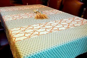 Sew a tablecloth for your Thanksgiving dinner using this simple Thanksgiving craft. This Thanksgiving tablecloth is festive yet stylish enough to use year round. The gorgeous, trendy fabrics are sure to contribute to an elegant Thanksgiving feast, with a subtle hint of autumn that won't overpower the room. Whether you're hosting a big family gathering or an intimate meal with your closest friends, this tablecloth is sure to be a hit. Making your own Thanksgiving table decorations is a great way to save a few dollars without sacrificing your Thanksgiving atmosphere.