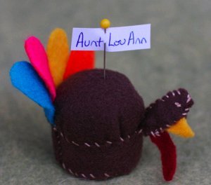 This is so darling, and kids would absolutely love it! I like the idea of using these as place holders and then giving them to the recipient as a momento .... This could become a holiday tradition and what a lovely way to remember family gatherings, especially in years to come. Use fabric scraps to creat this and you could even embroider the names on the turkey itself as another option! Sweet!