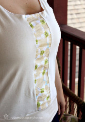 DIY shirt designs like this Top with a Pop are perfect for ladies who like to keep it casual. Using this tutorial, you'll be able to make a top that's both feminine and simple. You won't have to wear the same boring v-neck thanks to this project. As you'll see from the instructions, this is a solid color shirt with a strip of printed fabric sewn down the front, giving it an extra pop. These are cute shirts to make for your friends or for yourself.