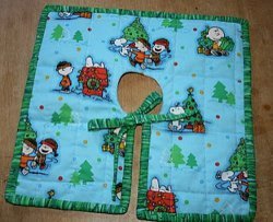 Cute mini Christmas tree skirt. The tiny trees do look best with their own little tree skirt. The instructions and photos are clear on how to make the square skirt and add a coordinated fold over binding for finishing. I might use a flat ribbon trim to finish off the edges.