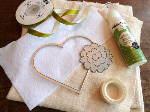 If desired, hand-cut small leaf from pale green felt. Stitch embroidery floss vein down center. Using Fabric Fuse Liquid Adhesive, adhere leaf to heart beneath flower. Let dry.