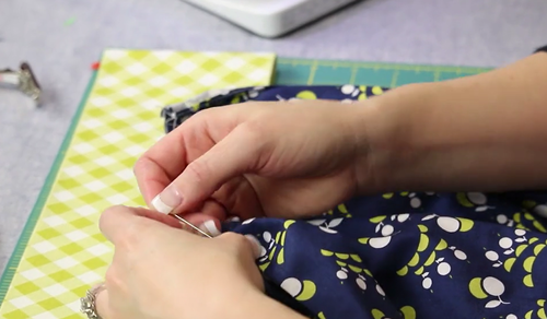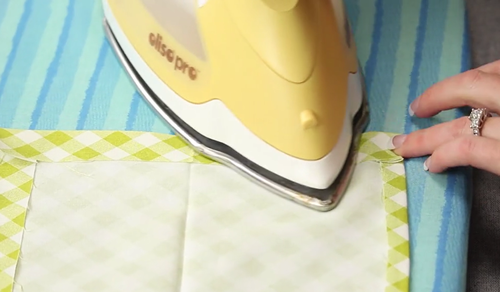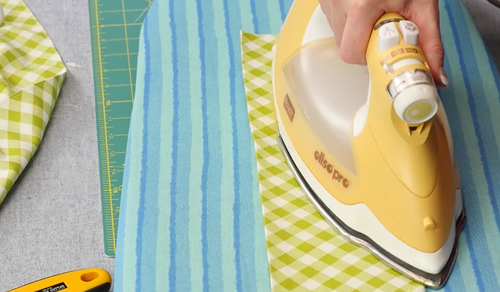 To make nice ends, turn the remaining raw edges of Fabric B in about 1-inch. Press.