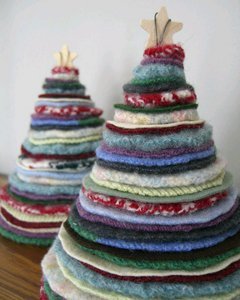 Buy some old sweaters at the thrift store and turn them in thrifted holiday trees, a great winter decoration for your home. Use our free sewing patterns to learn how to make your own.